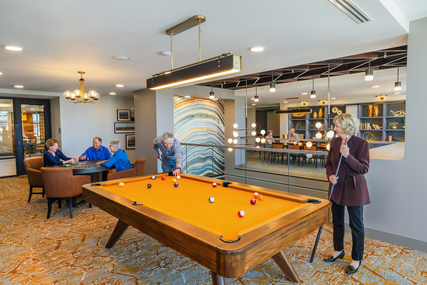 Also, there is often a social component involved in physical activities, like pickleball and bocce ball, which should be taken into consideration. Designing these amenities to allow spectators to watch and engage with participants can help further strengthen social networks. These vibrant spaces are more than just amenities – they catalyze healthy aging through connection.