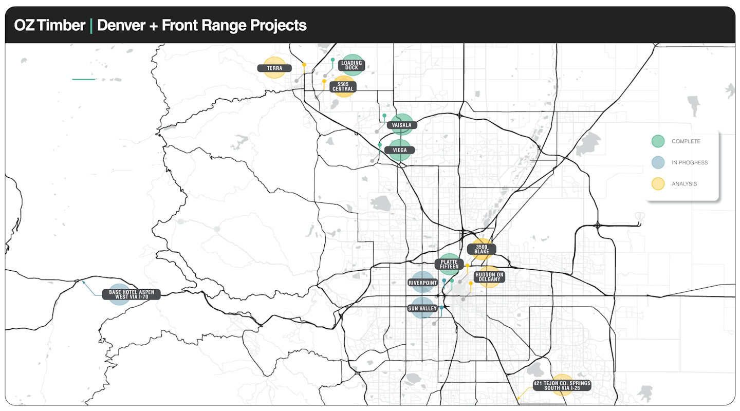 OZ boasts a distinguished portfolio of mass timber projects across the Denver metro area and Front Range. We have more mass timber projects than any other firm in Colorado.