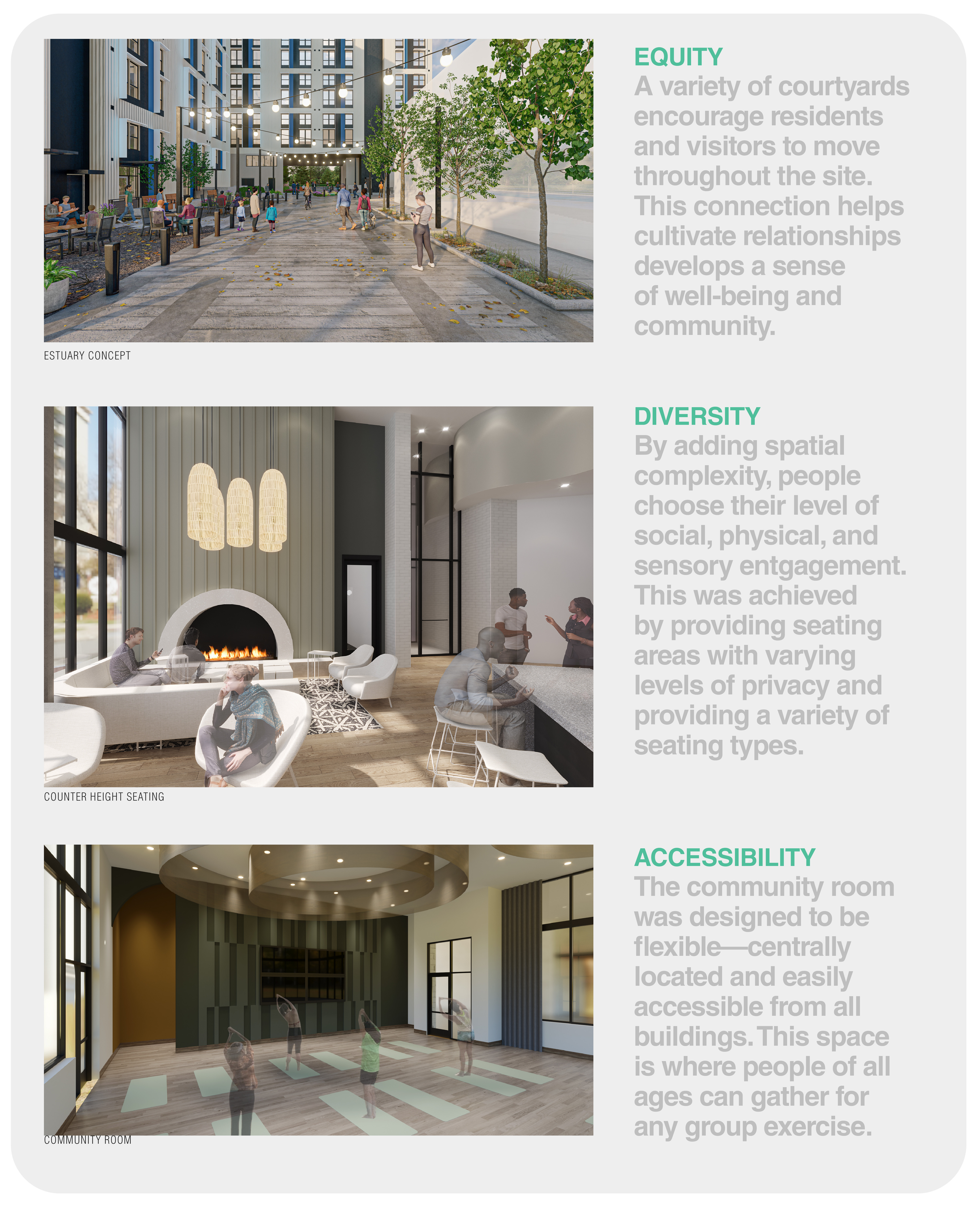 As the first block in the redevelopment of Denver’s Sun Valley neighborhood, the Block 3 project, in many ways, sets the stage for the future transformation of this culturally rich community. Block 3 by OZ is noteworthy for integrating public and semi-public open spaces that connect a new riverfront park with the balance of this unique neighborhood, providing 358 affordable housing units catered to families and seniors.