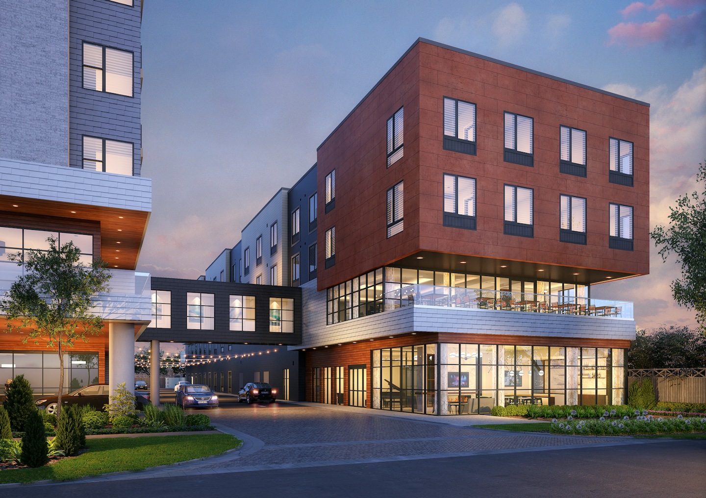 Anthology of Tanglewood is a unique and multi-faceted endeavor. The 7-story renovation transformed an underutilized apartment building into a vibrant independent living community. A new 4-story memory care and assisted living building rounds out this older adult campus. This historic neighborhood brought with it a complicated site; due to its narrow footprint, the lot was deemed to be undevelopable. Site access and connection to shared amenities and support spaces presented multiple design challenges. A solution was a glass sky-bridge from the existing building to the new addition, providing a connection to shared common areas between buildings and reducing the need for additional support spaces. Amenities that encourage social gatherings include a poolside bar & bistro, spacious dining venues with expansive terraces, fire-side lounges adjacent to a bustling café, and a multi-purpose room utilized for creative pursuits. Spaces that promote wellness include a therapy and exam suite for visiting home health providers, a salon and barbershop, and fitness rooms.