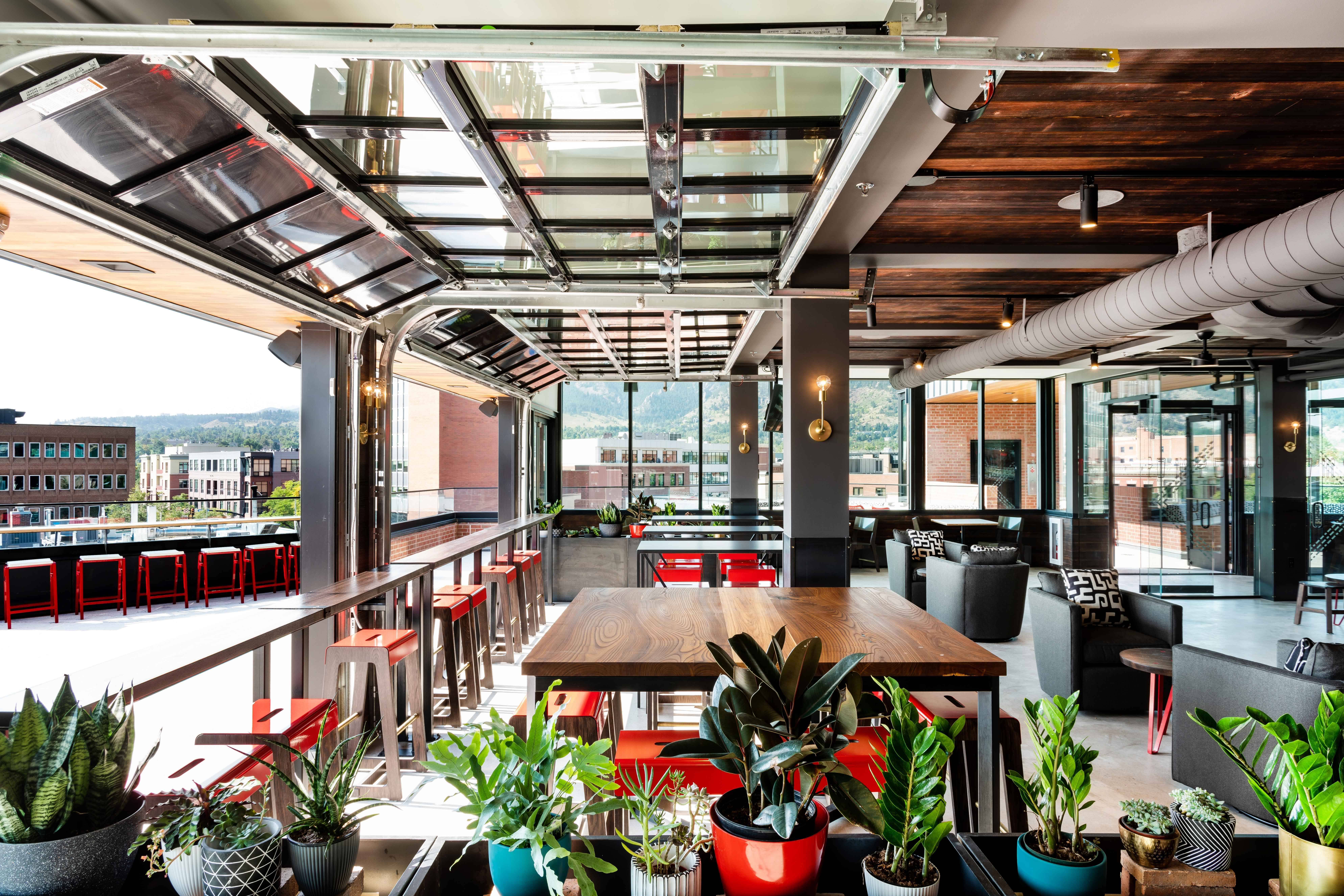 Avanti Boulder houses 6 restaurant concepts within modified shipping containers, offering everything from sandwiches and pizza to Moroccan and Taiwanese cuisine. The first floor includes 5 of these restaurants, as well as an expansive bar area. The fourth floor contains another restaurant with a full bar, large dining area, and exterior lounge offering stunning views of the Flatirons and downtown.