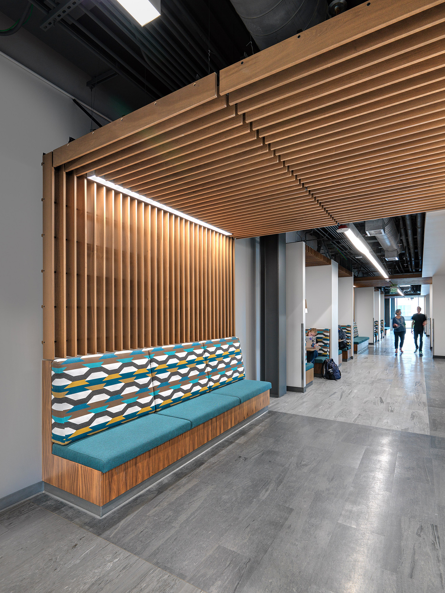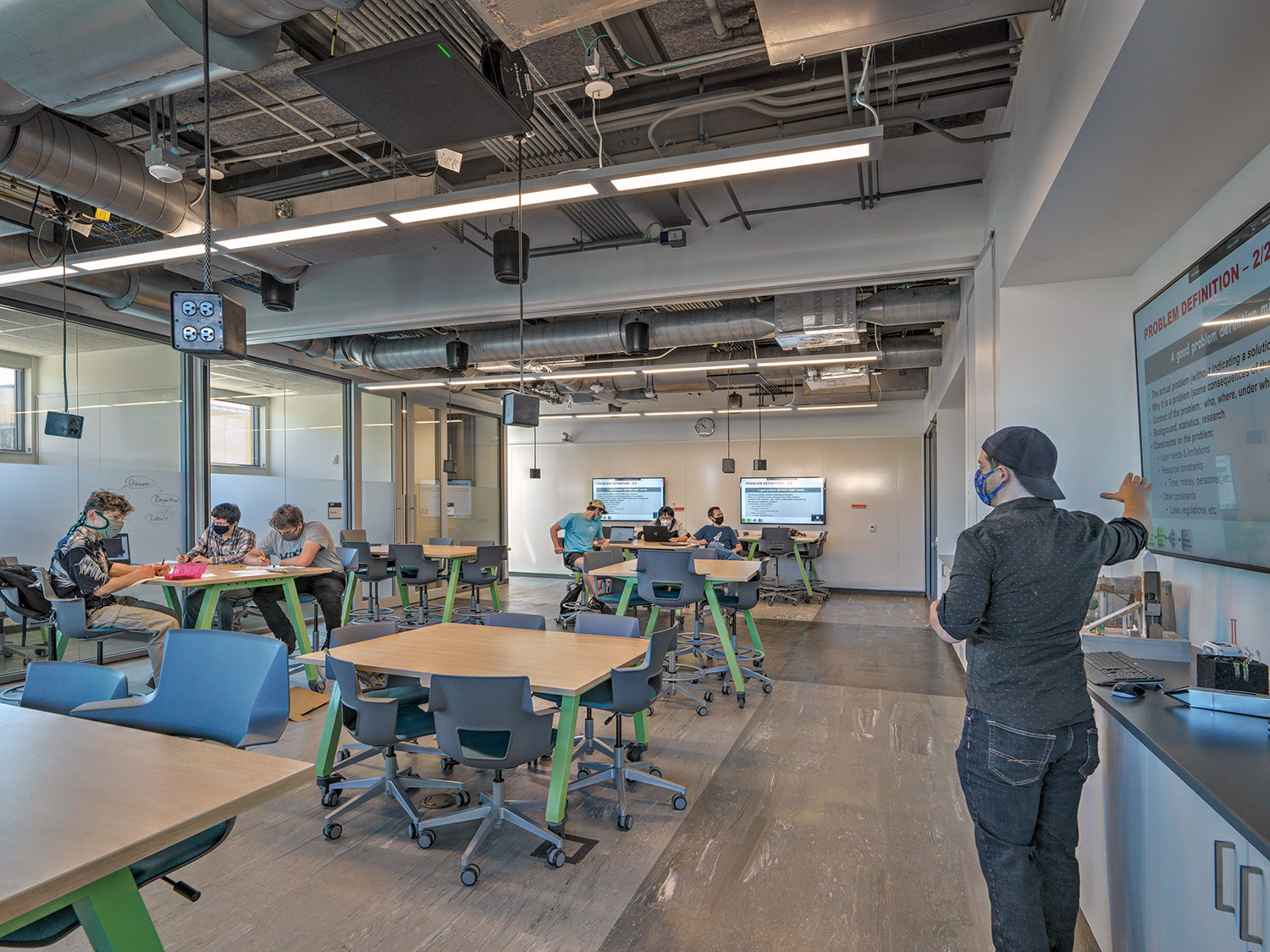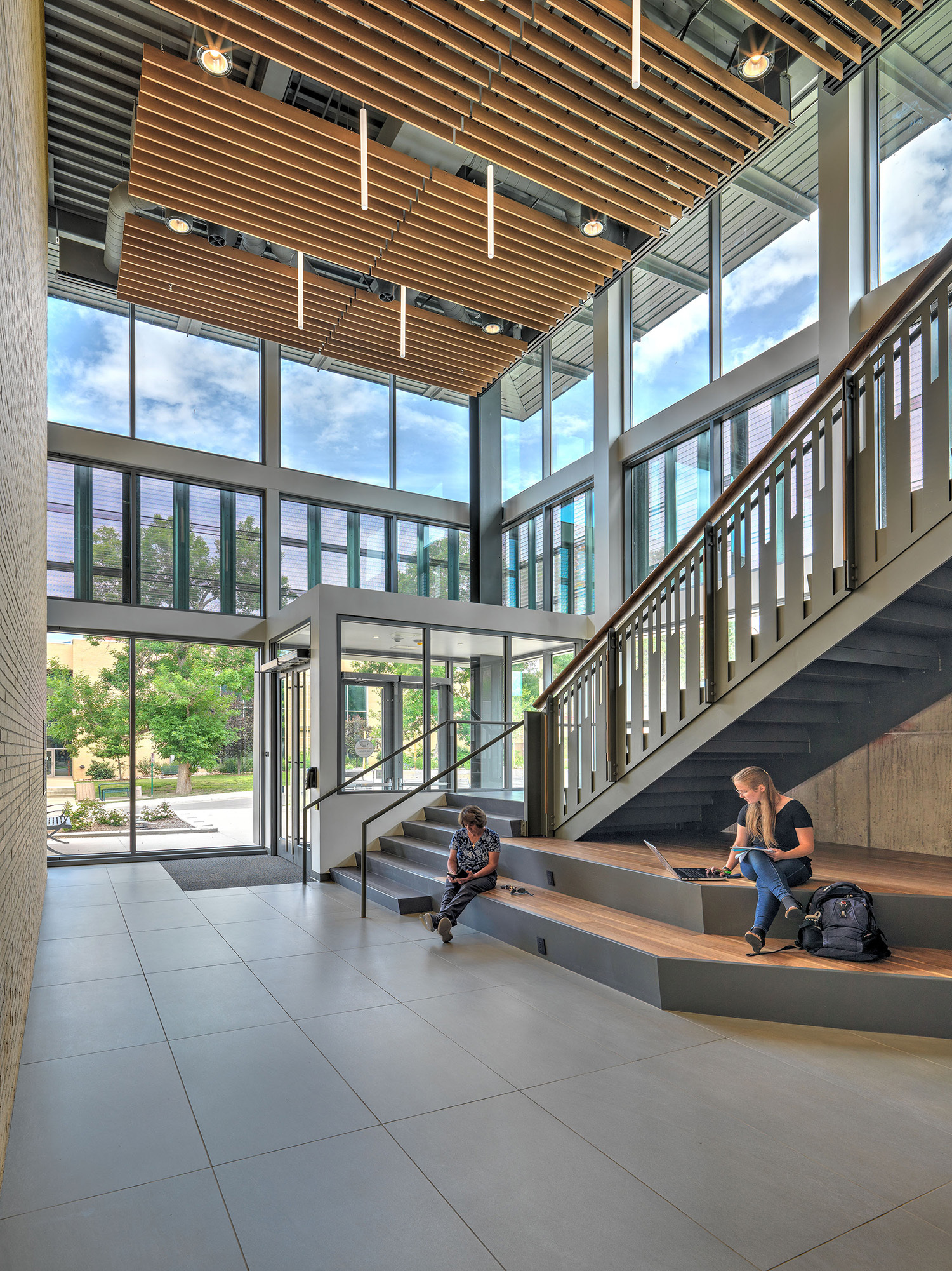 OZ envisioned McNeil Hall as a lively hub for activity and learning, where students can meet for classes, collaborate, and discover new creative pursuits. This project also includes the School of Mines’ first campus parking structure, adding 750 spaces to allow more flexible parking options for students and staff. McNeil Hall houses the Engineering, Design & Society Department and is the new home of Cornerstone and Capstone Design. Located in the western region of campus, the building is designed to reflect the campus architecture in a unified composition that integrates the structure of the building. Classrooms are designed for collaboration, with multiple display screens, walls you can write on, and a modern aesthetic, flexible in both furniture height and location. OZ worked closely with the School of Mines to finalize the site selection for the new parking structure, involving the neighboring community to build consensus around the project.