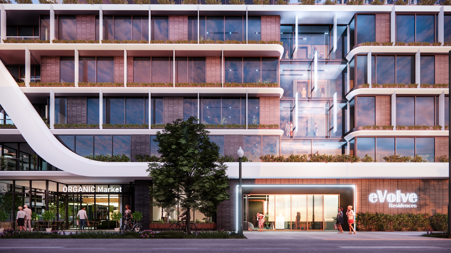 Evolve Towers, a 331-unit mixed-use residential project, is poised to become a gateway to Downtown Denver, found at the northern edge of the fast-growing Arapahoe Square neighborhood and just south of the Historic Cutis Park Neighborhood. Collaborating with design architect Sanzpont Arquitectura, the project is envisioned to be an environmentally responsible and sustainable structure that creatively integrates into the surrounding neighborhoods, helping advance their architectural character. The development is targeting a “net zero” goal, combining energy efficient technologies and construction methods with responsibly sourced materials. Totaling 420,000 sf, two point-towers come out of a podium comprised of ground-level retail space, above-grade parking on levels 2-5 with 280 parking spaces, and an substantial amenity floor that contemplates a private members-only club at level 6.
