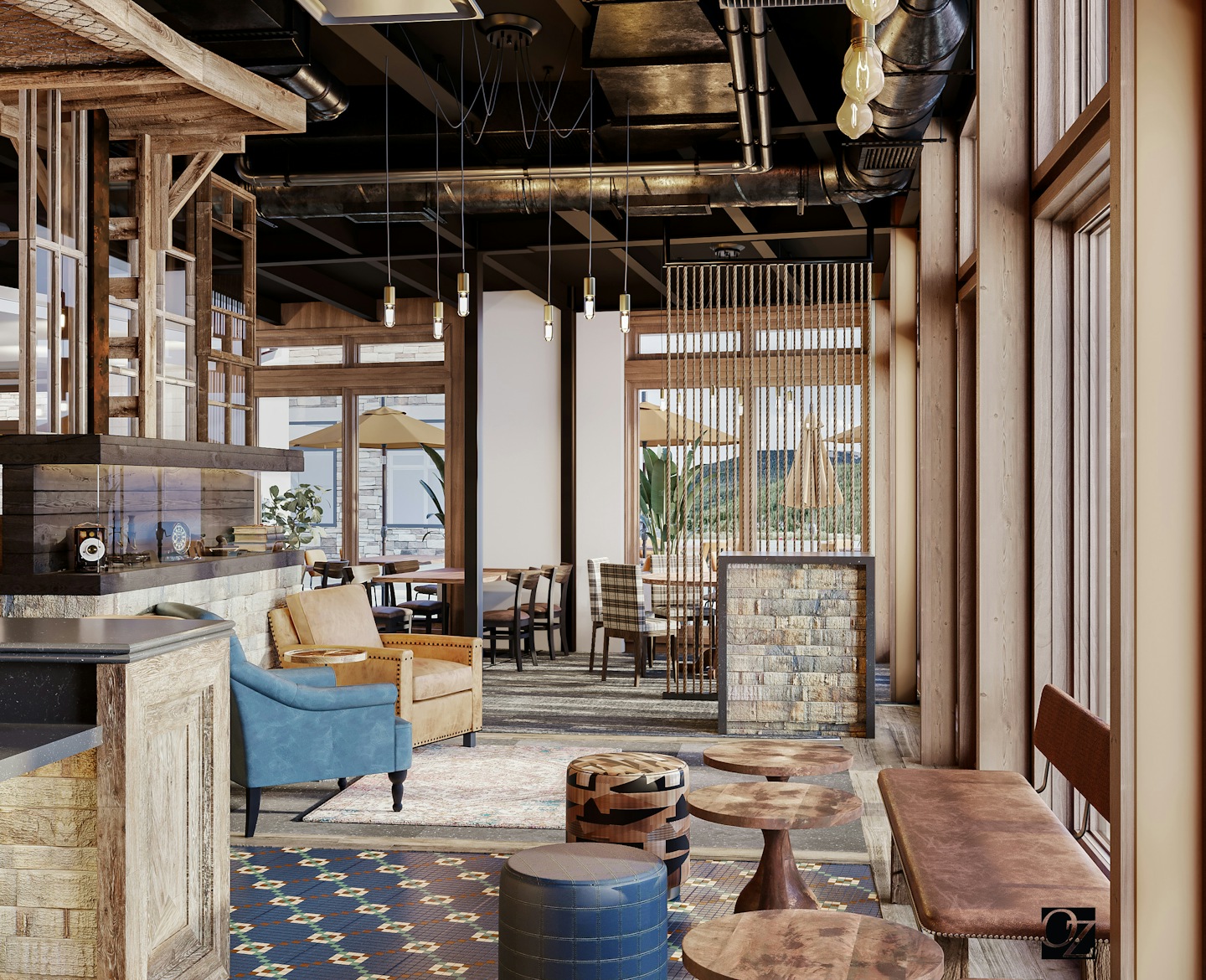 This OZ-designed restaurant and bar was inspired by nature, layers of local history, celebration of community, and the magic of a slow-cooked meal. A timeless, thoughtful, and unique collection of comfort with perfectly worn-leather seating and weathered wood tables, soon to provide a favorite spot to meet friends and family after a full day's adventure in the Rocky Mountains.