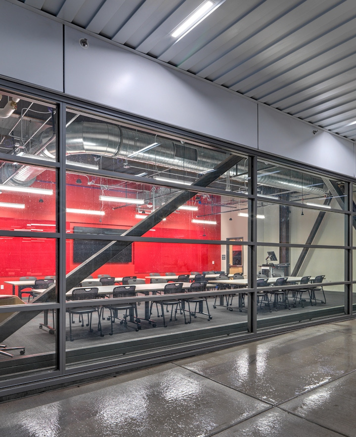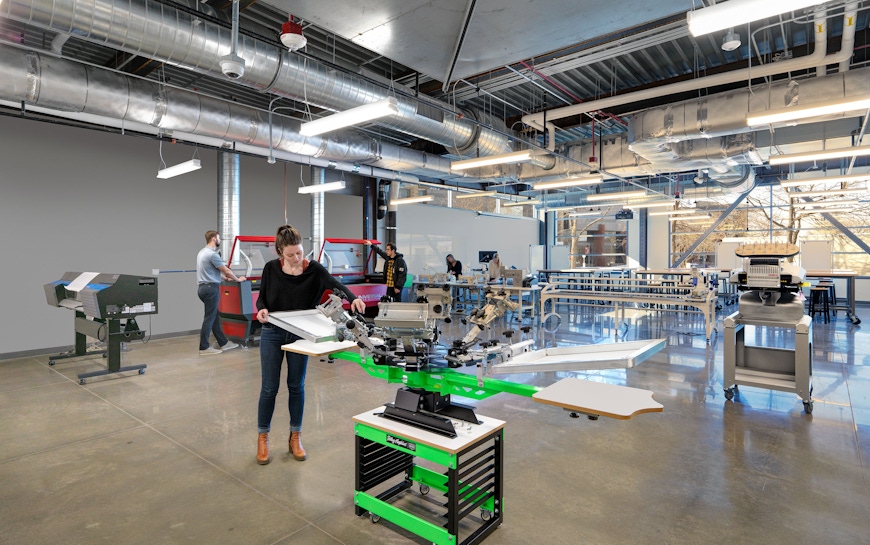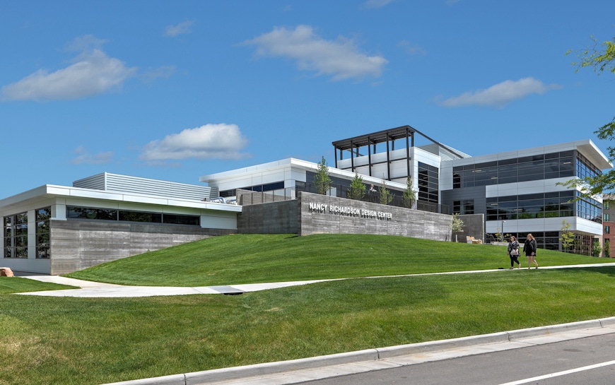 Located adjacent to the new football stadium, the Richardson Design Center is an important campus gateway. As a center for multi-disciplinary collaboration, the building is sited to encourage pedestrian flow through the facility, inviting the campus community to engage with the building and the programs within. The building supports ideation, prototyping, and fabrication and showcases the creative process through strategically located and highly visible collaboration and display/critique spaces. The workshop environment has a strong connection to the outdoors via overhead doors that connect the fabrication spaces to outdoor workspaces in the oasis. LEED Gold Certified, the building features impressive sustainability features that complement the design and look of the centrally located facility on campus. These features include plumbing features that use 47% less water than a typical building of its size, and healthy, low-emitting interior finishes that are used throughout the entire facility. Mechanical systems, such as high-efficiency rooftop air handling units and a high-efficiency gas boiler were also implemented into the design, which assists in achieving an energy cost reduction of 29% over an ASHRAE 90.1 2007 baseline. During construction, over 90% of the debris was recycled instead of being sent to a landfill.
