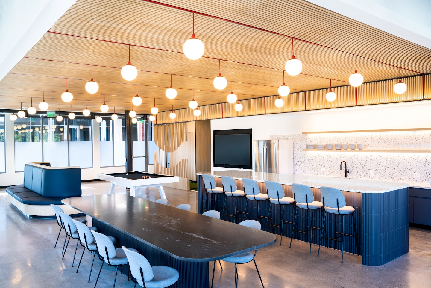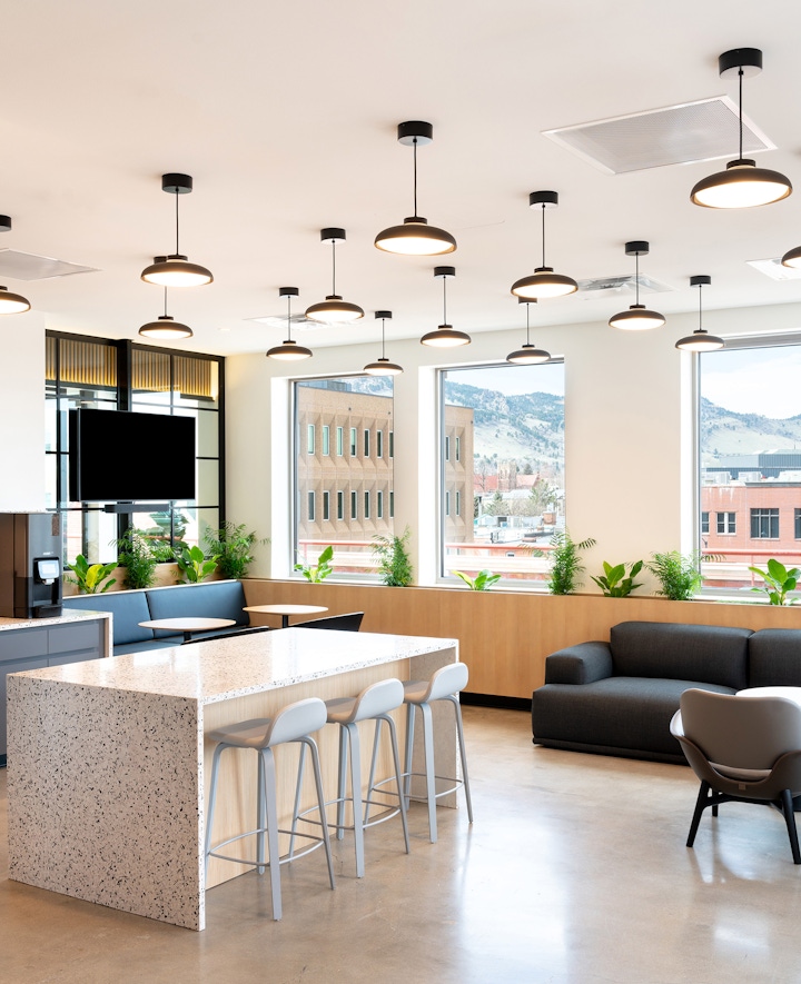 OZ's remarkable interior architectural project creates a home base for Rubicon, a leading private equity firm focused on supercharging enterprise software companies. Throughout the office, OZ's design team took great care to infuse the space with a unique heartbeat that strongly reflects the client’s brand and values. The design capitalizes on stunning views of Boulder’s iconic Flatirons and leans into the company’s work-hard/play-hard culture. Level One is focused on socialization, collaboration, and entertainment, featuring a range of amenities, including a modern hospitality kitchen, a 30-person conference room equipped with cutting-edge technology, and a vibrant gaming lounge centered around a custom built-in golf simulator. Level Four serves as the company’s main workspace, organized around a central spine wrapped in a wood wallcovering that adds warmth and supports wayfinding. Private offices along the perimeter offer unobstructed views of the Flatirons, and floor-to-ceiling glazing allows light to pass through to the interior open desking. Connection to the land is further supported with an expansive outdoor patio encircling the fourth floor, enabling a strong sense of place while promoting overall well-being. Throughout the project, incorporating biophilic design elements thoughtfully brings nature into the office fabric, enhancing both the aesthetic appeal and creating a fresh and inspiring environment for occupants.